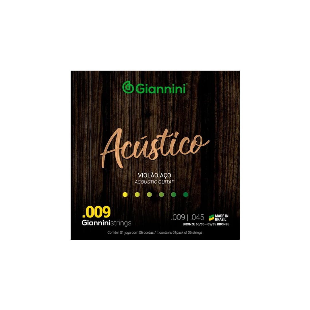 Encordoamento Para Violão Aço .009 Giannini GESWAL Acústico Bronze 65/35